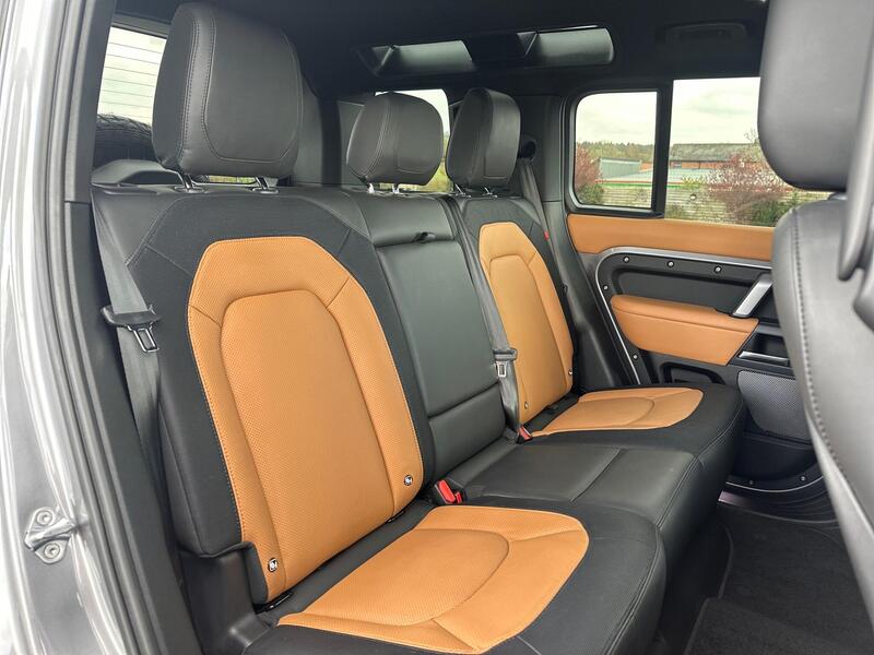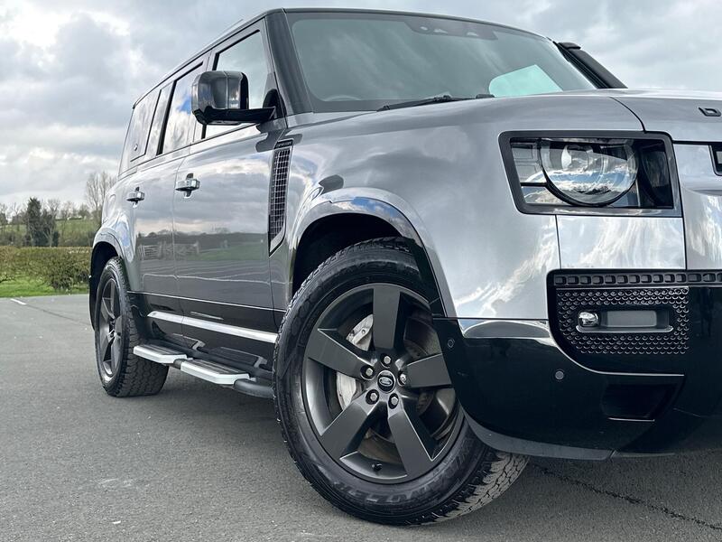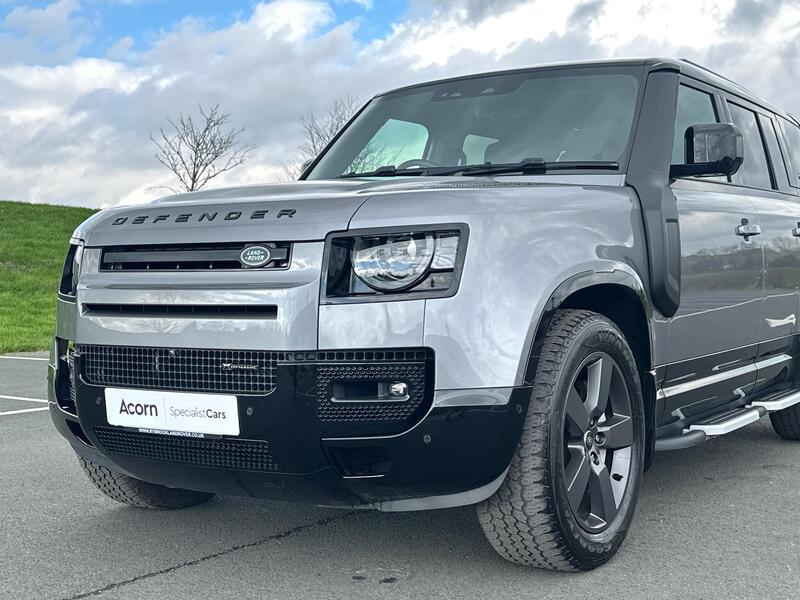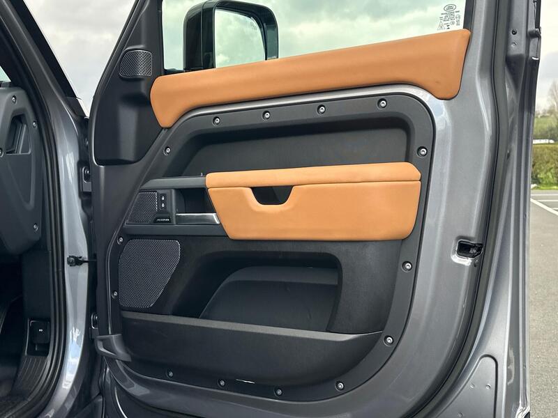 Acorn Specialist Cars are pleased to present this Land Rover Defender 110, finished in Eiger Grey with Perforated Windsor Leather in Vintage Tan and Ebony, paired with the 20in Alloy Wheels in the Style 5098 in Satin Dark Grey, the Exterior Black Pack, Urban Rear Spoiler, 20in Full Size Spare Wheel to the Rear and the Snorkel, all together, completing the car beautifully.