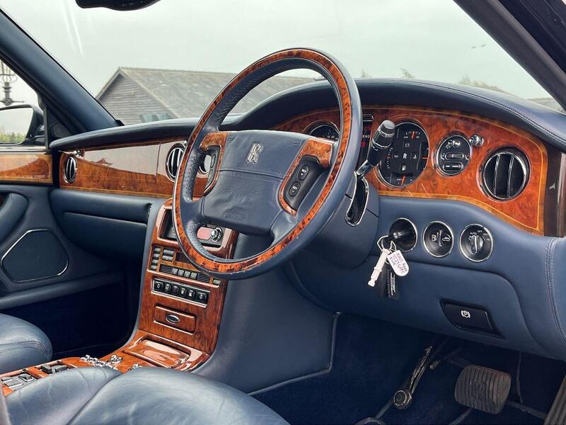 Acorn Specialist Cars are excited to present this 2001, Silver Seraph Rolls Royce in the Park Ward Edition, this limousine version was one of only 124 built, and only 27 in the Right-Hand Drive. Finished in the stunning Royal Blue Pearl, with the matching Leather Interior and extensive Inlaid Walnut Wood Veneers in brilliant condition.